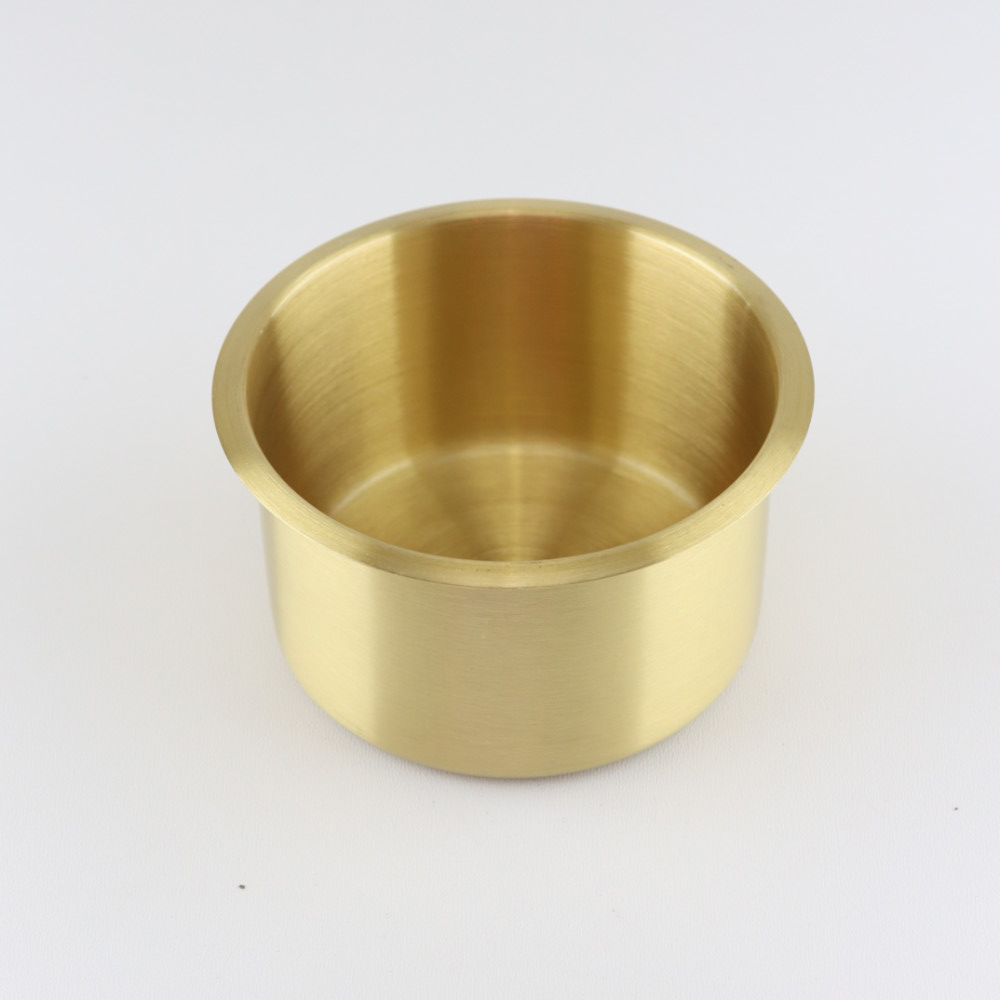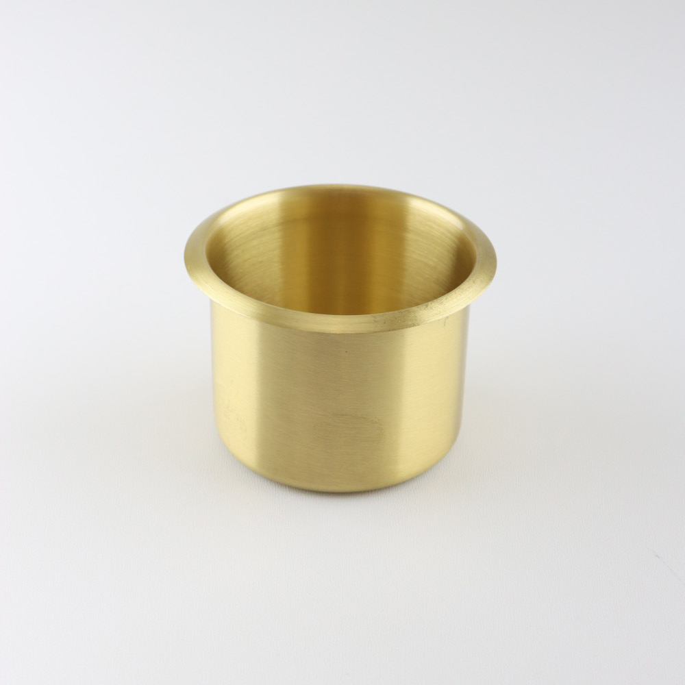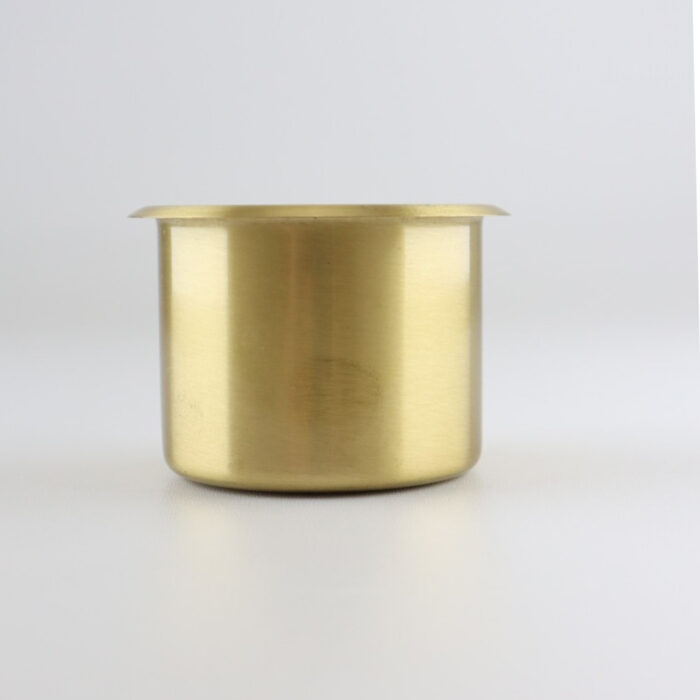 De meeste standaard afmetingen flesjes en blikjes passen in deze goud roestvrijstalen bekerhouders.