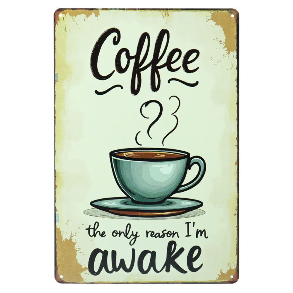 Het coffee reason im awake metalen bord is een herkenbare en grappige toevoeging voor iedere keuken, koffienis, kantine of werkplek. De warme kleuren en illustratie van een dampende koffiekop zorgen voor een rustige maar duidelijke uitstraling die perfect past bij een koffiehoek of ontbijttafel. De tekst maakt meteen duidelijk waar jouw dag mee begint: koffie.
