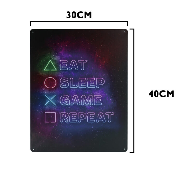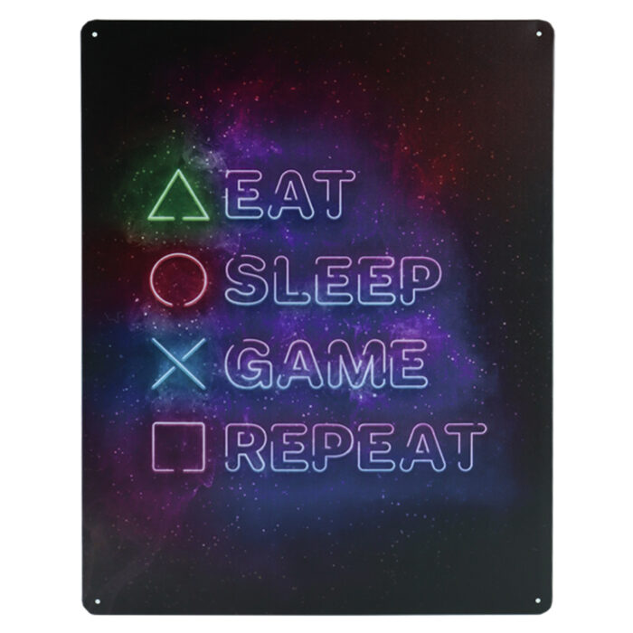 Het opvallende Eat Sleep Game Repeat ontwerp spreekt iedere gamer aan en brengt direct sfeer in je gamekamer