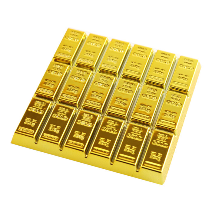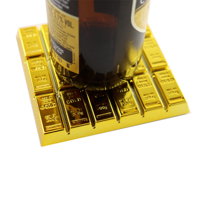 Set van 4 gouden onderzetters in de vorm van goudstaven.