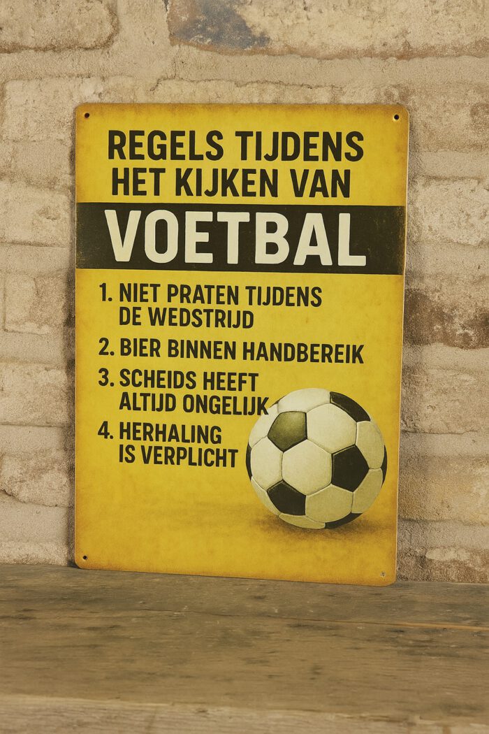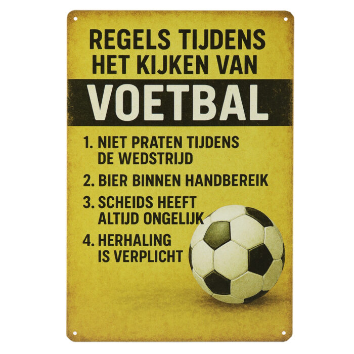 Metalen wandbord met de onmisbare voetbalregels voor elke fan!