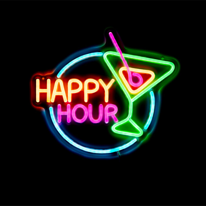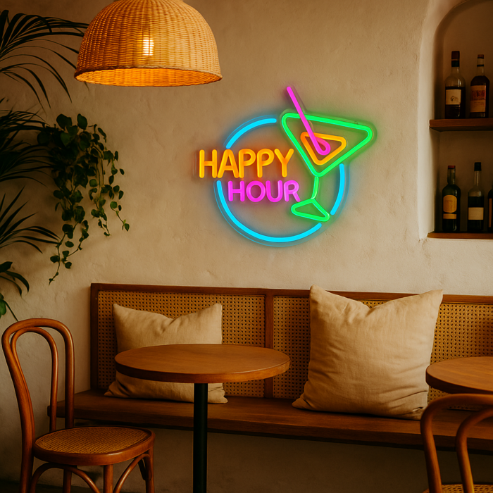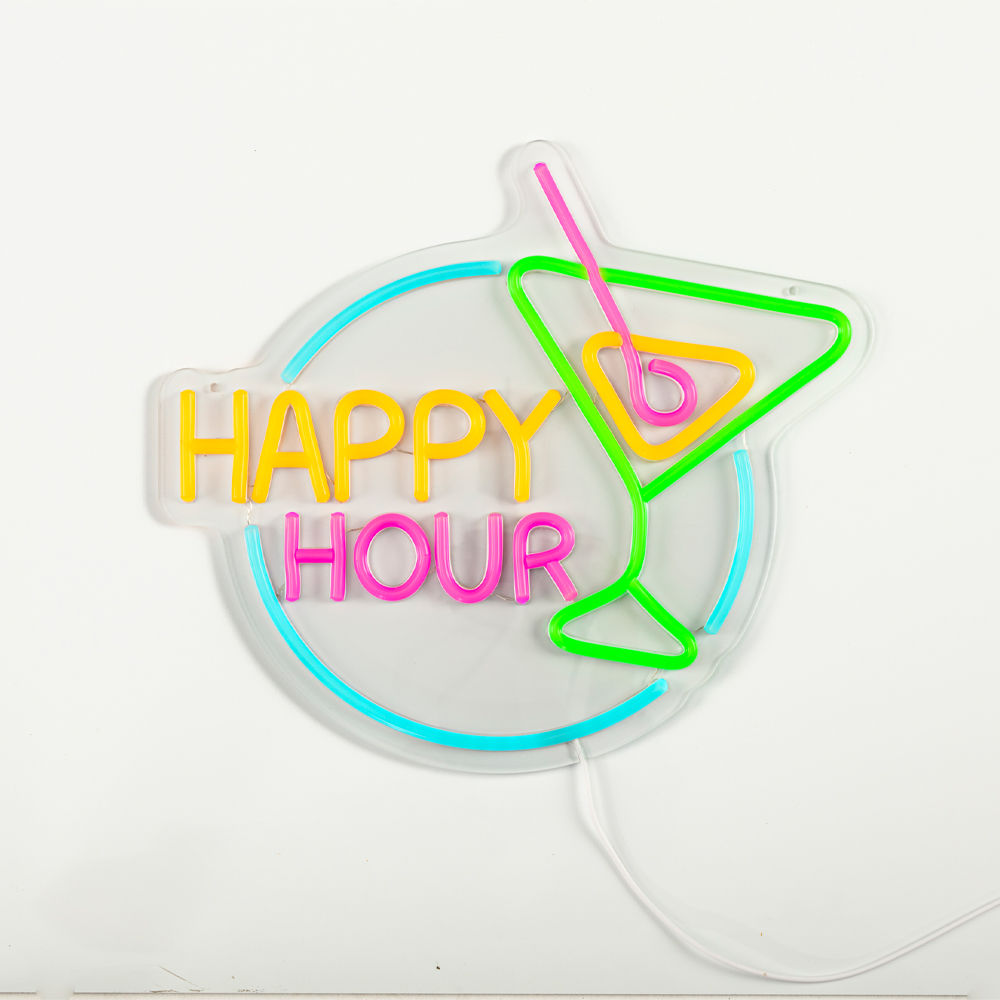 Breng kleur en sfeer in je bar of feesthoek met de Neonbord Happy Hour.
