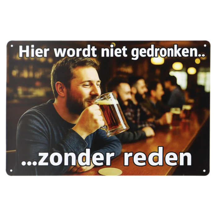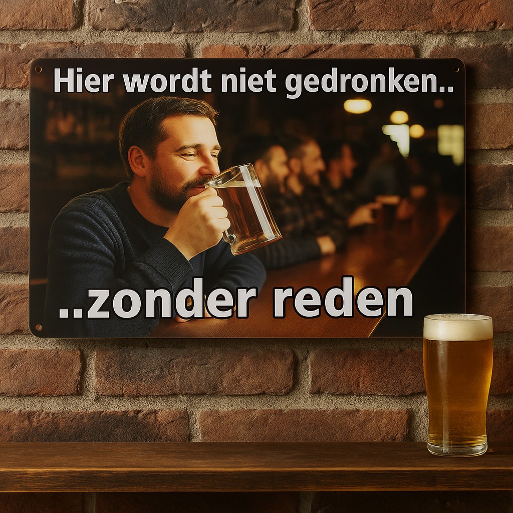 Dit humoristische metalen bordje past perfect in elke bar, mancave of feestkelder waar de sfeer belangrijker is dan het excuus.