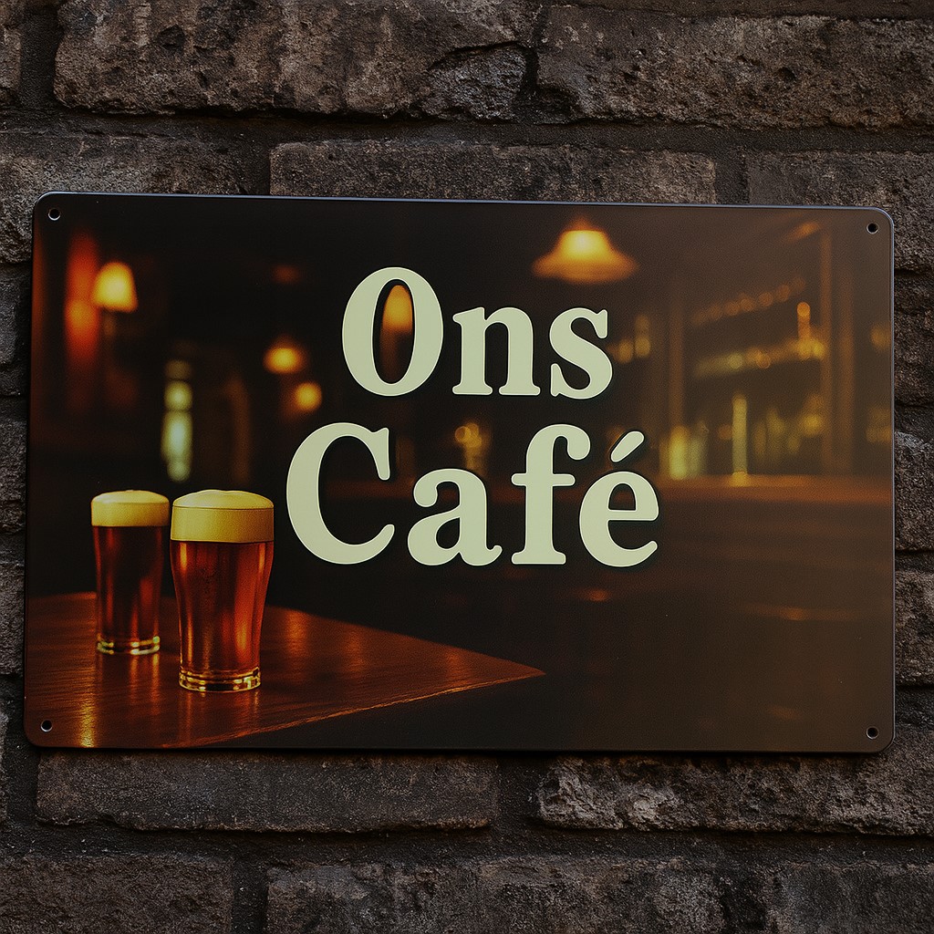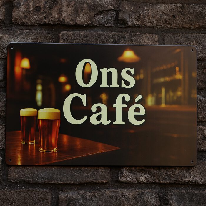 Gezelligheid kent geen tijd, en dat straalt dit metalen bordje Ons Café helemaal uit.