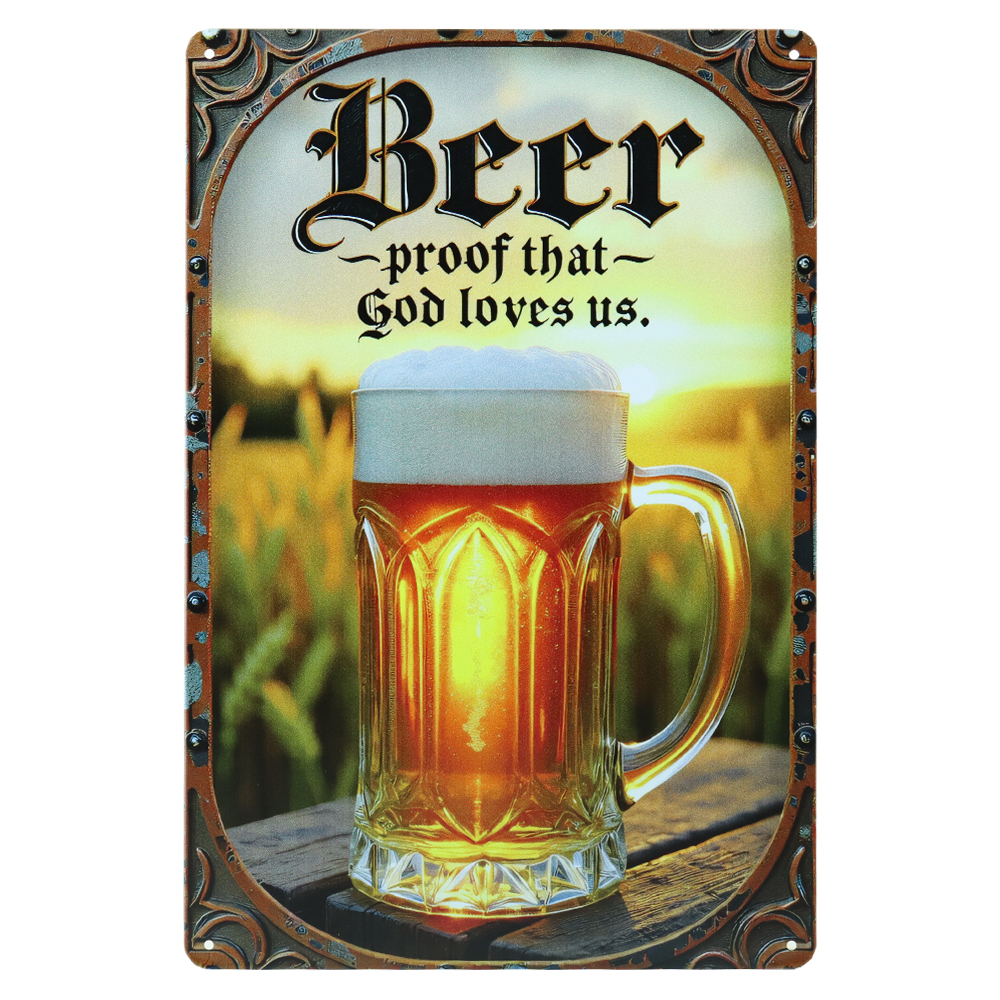Het beer proof that god loves us metalen bord combineert bier met een bekende en humoristische uitspraak. De tekst “Beer – proof that God loves us” zorgt voor een knipoog en maakt dit bord populair bij bierliefhebbers die houden van een rustige, sfeervolle uitstraling.
