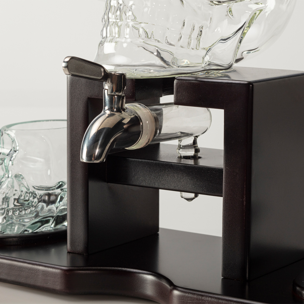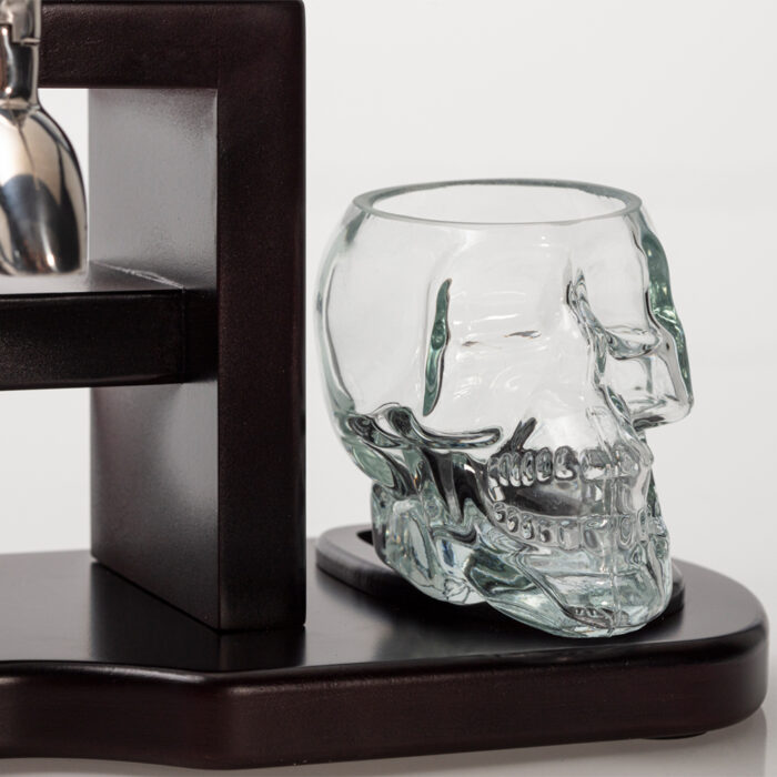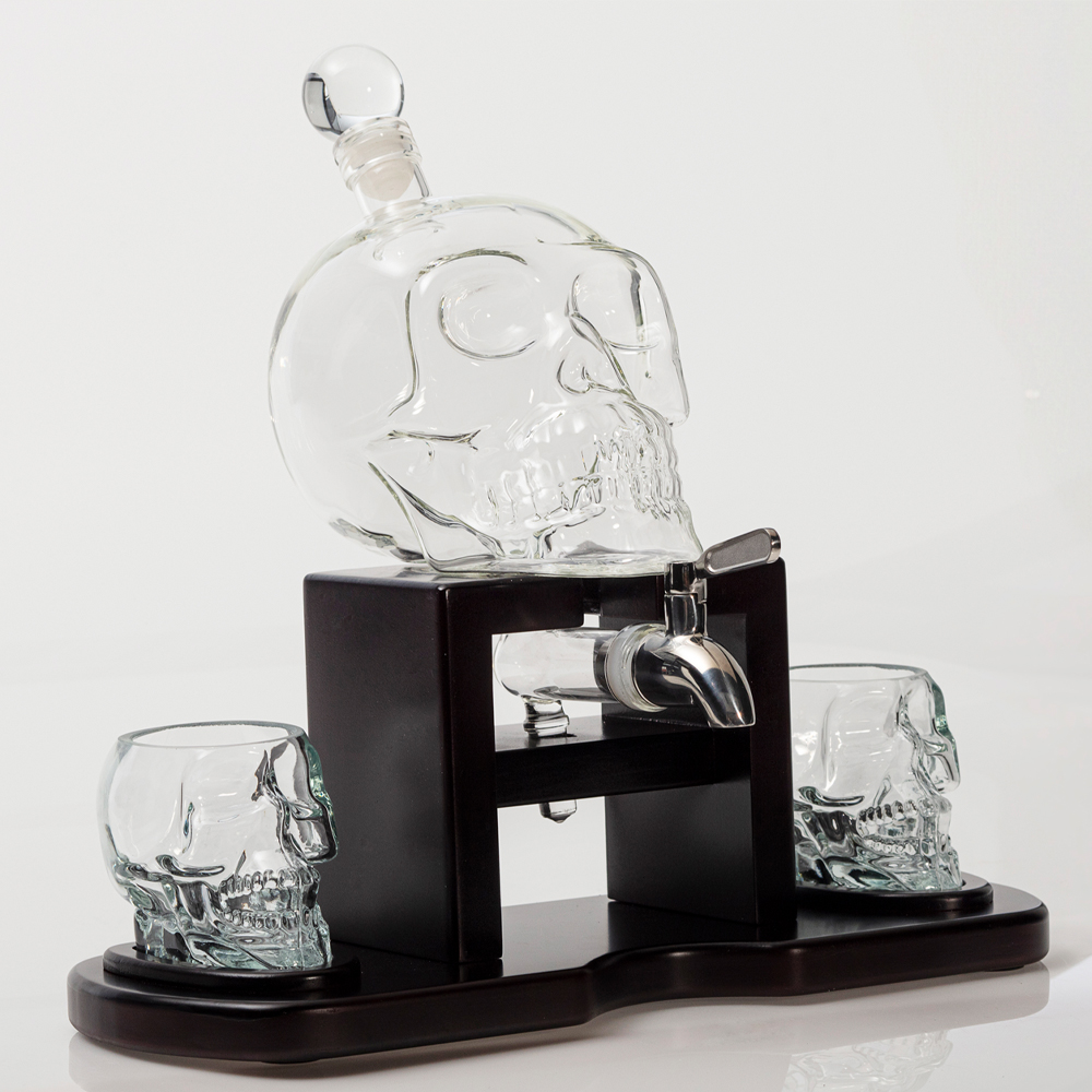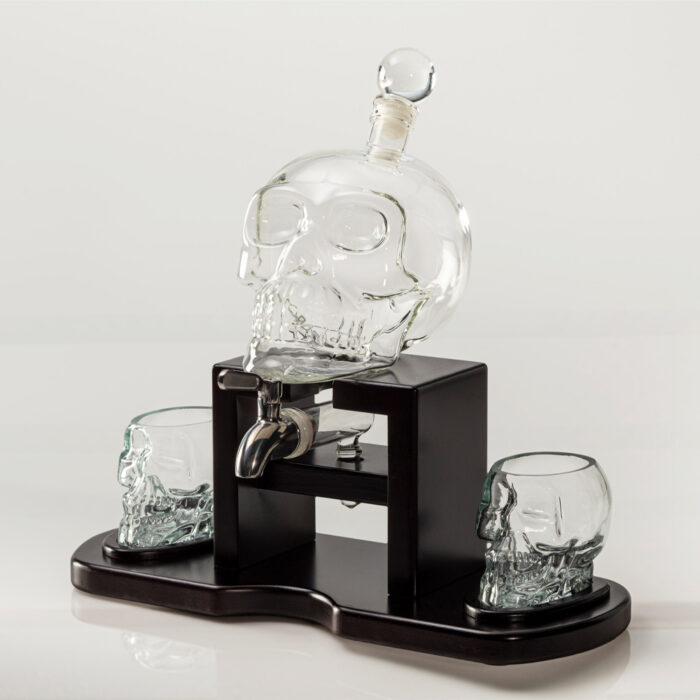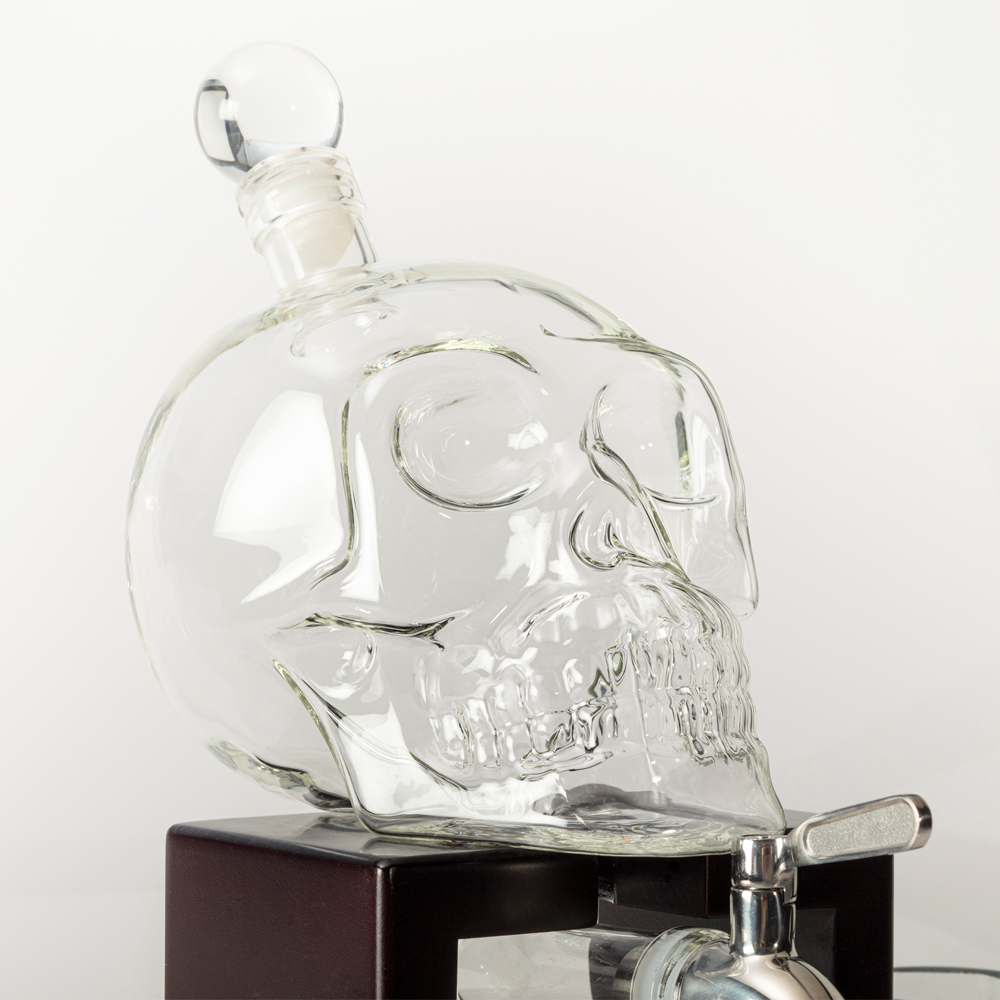 Deze glazen skull whiskey karaf is een echte blikvanger voor elke bar.