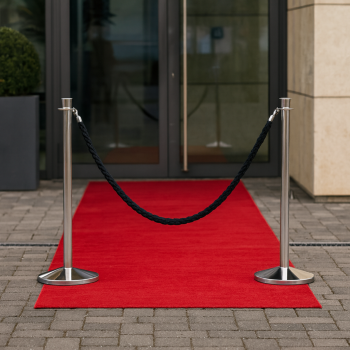 Geef je entree of event een luxe uitstraling met deze zilveren VIP afzetpaal deluxe.
