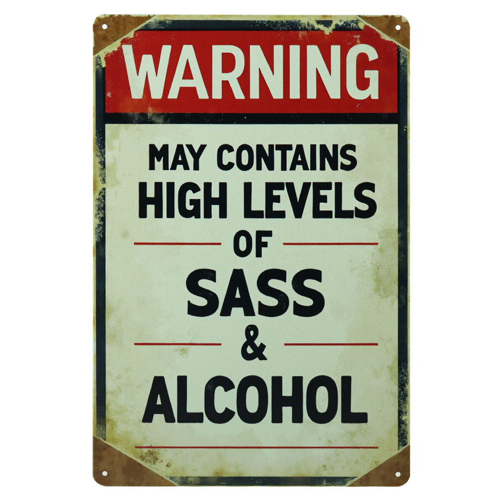 Warning Contains Sass And Alcohol – Metalen Borden